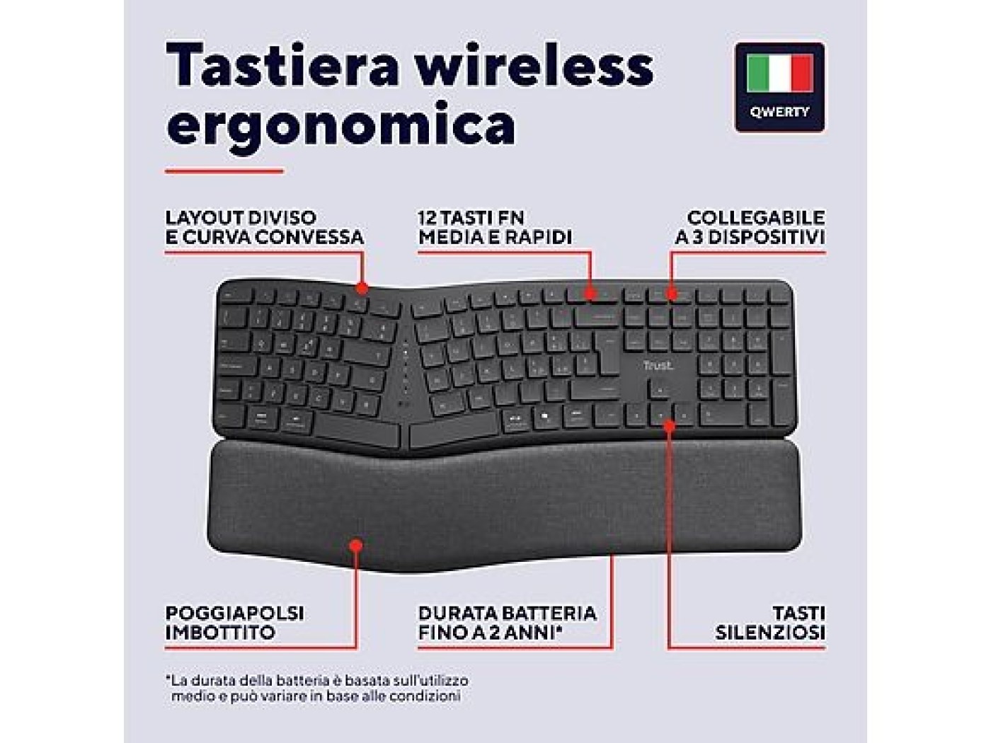 "Novità da provare!Questa tastiera ergonica è certificta ErgoCert, per garantire la migliore postura mentre si lavora.